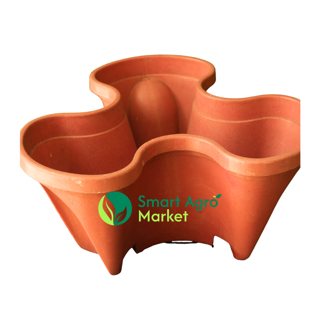 Bright red plastic flower pot designed for flowering plants. Adds color and charm to any space.